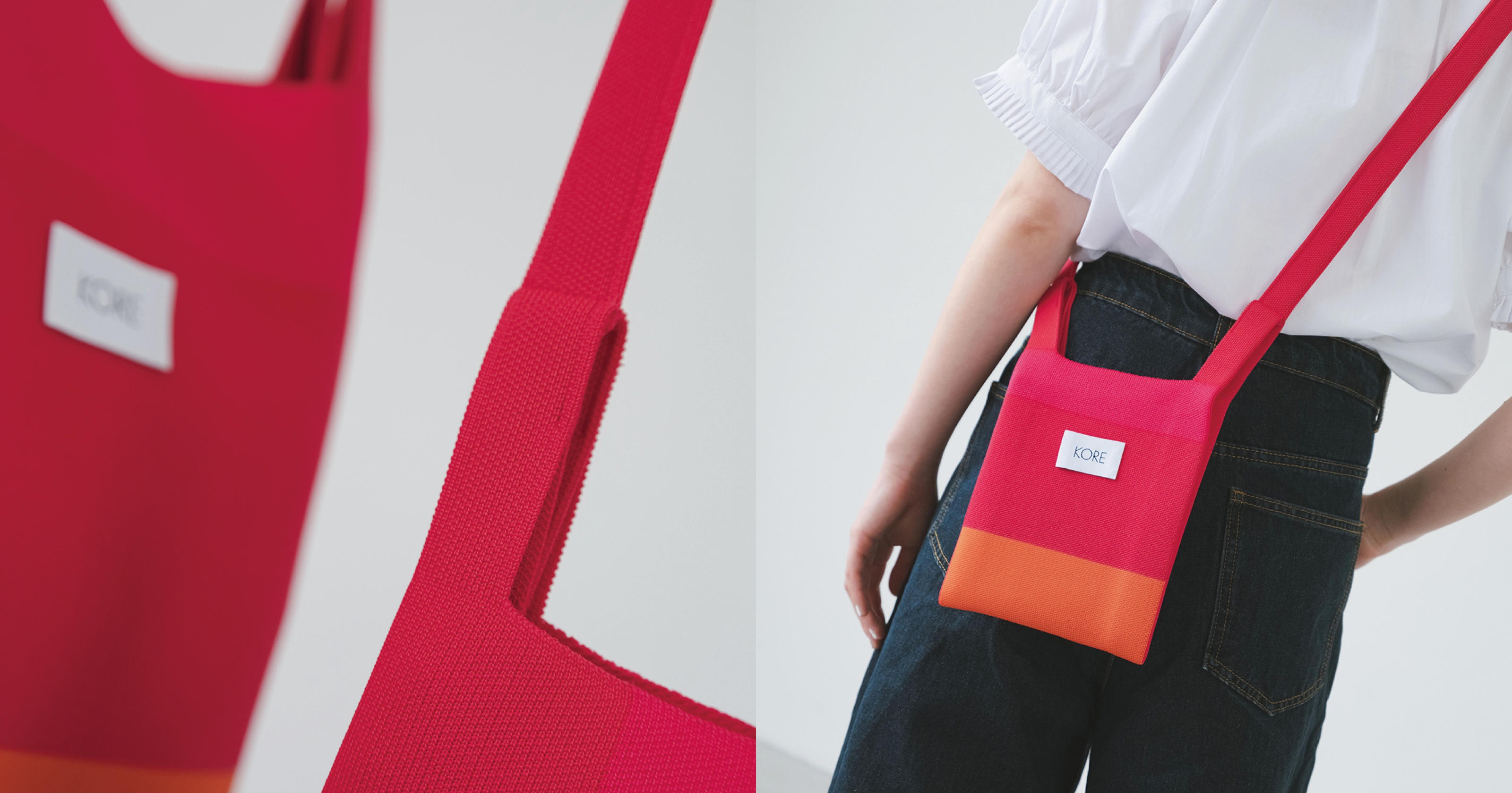 美しい発色、超軽量、ウォッシャブル。そんな快適さを実現したKOREのバッグの素材は、日本国内で回収された使用済みペットボトルを原料に、日本国内で製造されたリサイクルポリエステル先染糸。そして1st Collectionは、豊かな自然と水に囲まれた日本有数のニットの生産地・新潟県五泉市で製造しました。経験豊かな職人の手で生み出された美しく、上質な仕立てをぜひ手に取って感じてみてください。
