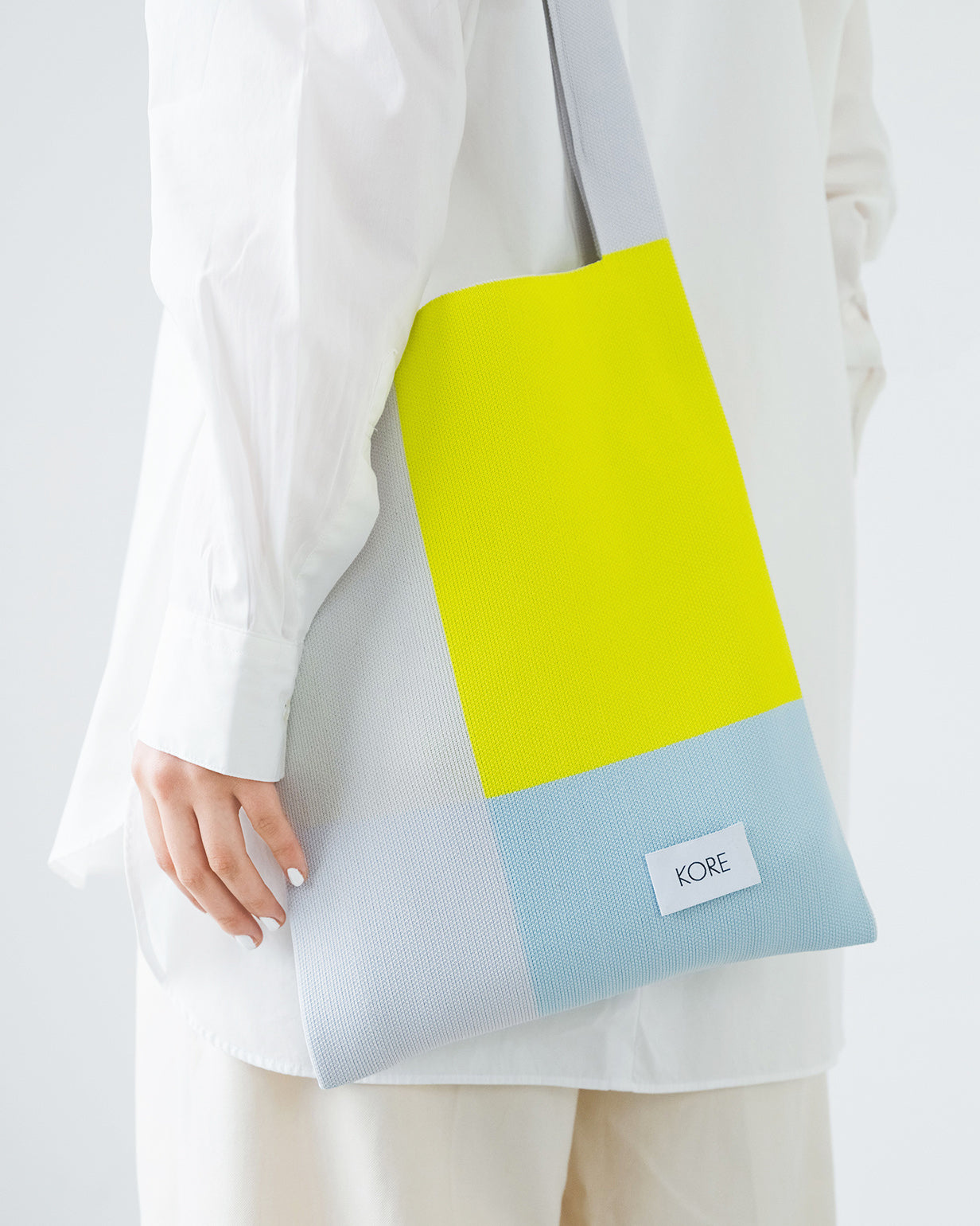 美しい発色、超軽量、ウォッシャブル。そんな快適さを実現したKOREのバッグの素材は、日本国内で回収された使用済みペットボトルを原料に、日本国内で製造されたリサイクルポリエステル先染糸。